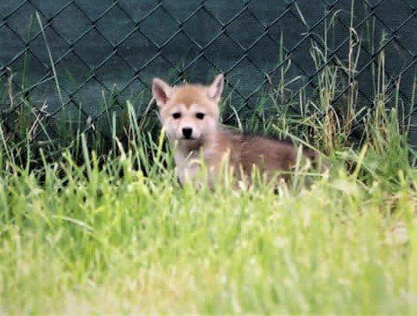 - Smaller and slimmer than a wolf; erect, wide, pointed ears, a slim muzzle and a black nose.